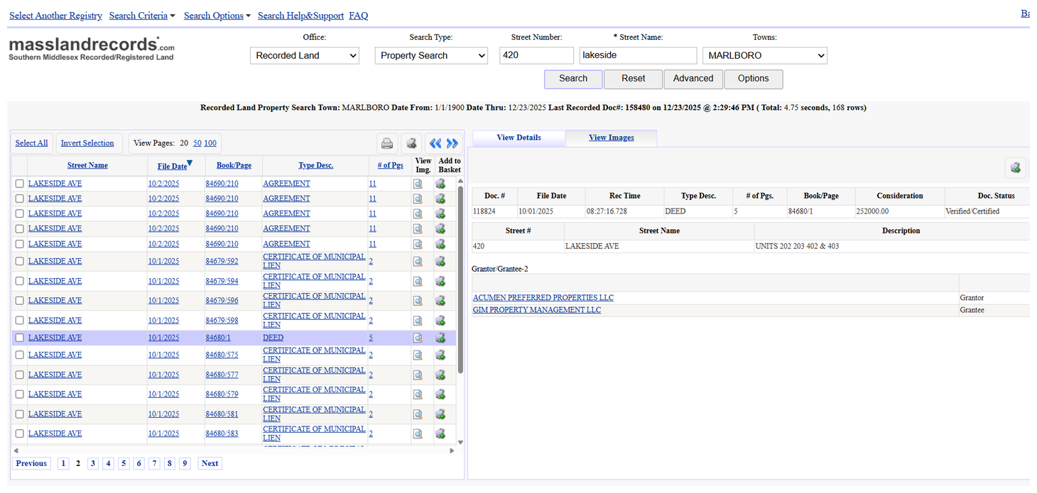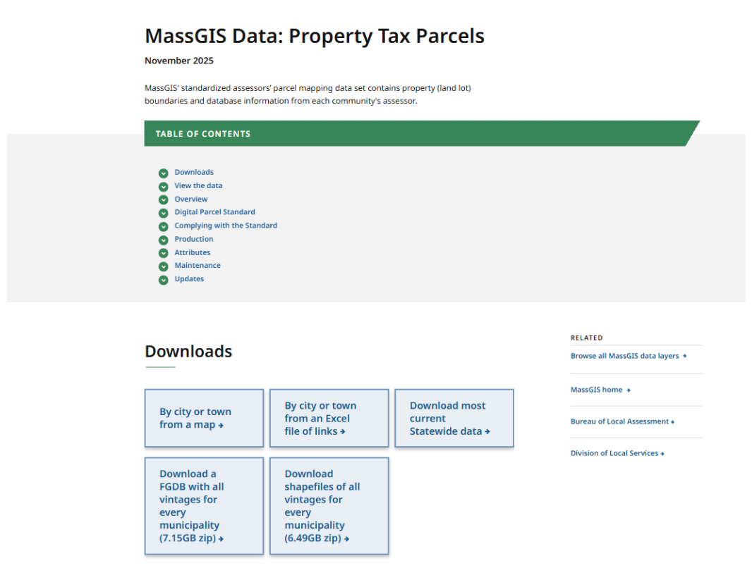 County Registry of Deeds Title and Plan Data linked to each Digital Property on the Mapp